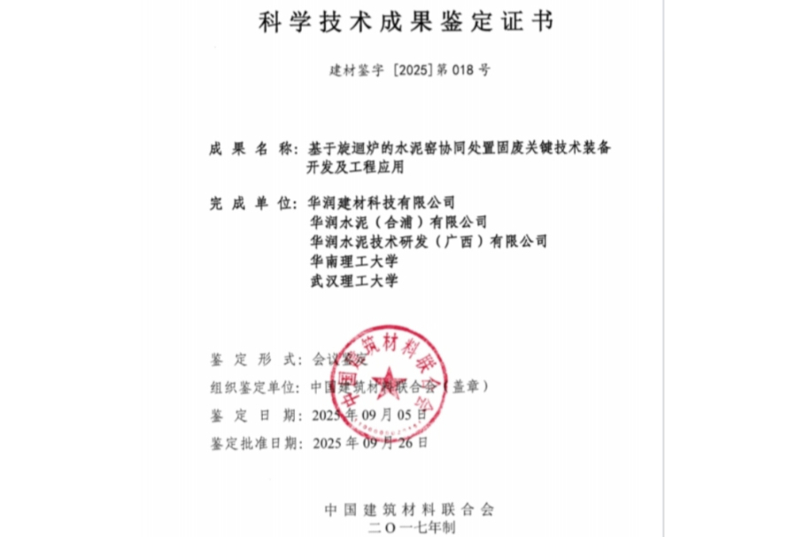 华润建材科技“旋迴炉”项目通过中国建筑材料联合会科技成果鉴定