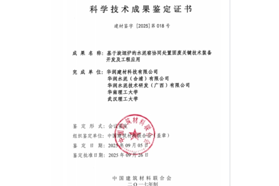 近日,华润建材科技在科技创新领域再传捷报。公司牵头研发的“基于旋迴炉的水泥窑协同处置固废关键技术装备开发及工程应用”项目,通过中国建筑材料联合会科技成果鉴定,项目成果被认定总体达到国际先进水平,部分技术居国际领先水平。