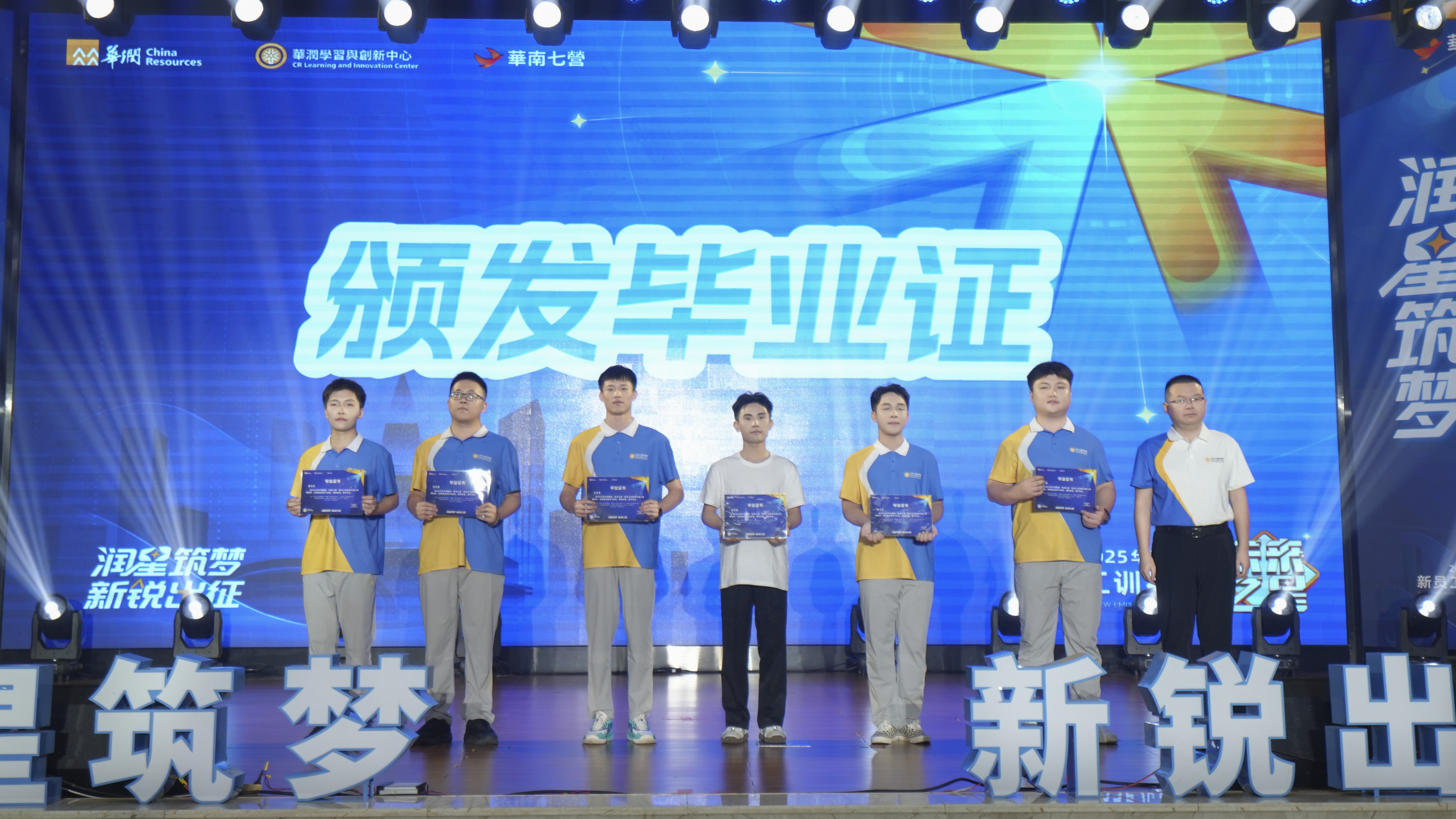 8月15日,2025年华润集团“未来之星”新员工训练营华南七营(建材科技营)毕营仪式在广州华润建材科技学习与创新中心举行。公司领导景世青、刘伟,总部部室、大区主要负责人代表,以及人力资源条线人员等一同参加,见证华南七营200名营员顺利毕业。