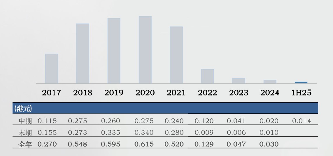 | 年份 | 每股股利(DPS) | 每股盈利(EPS) |