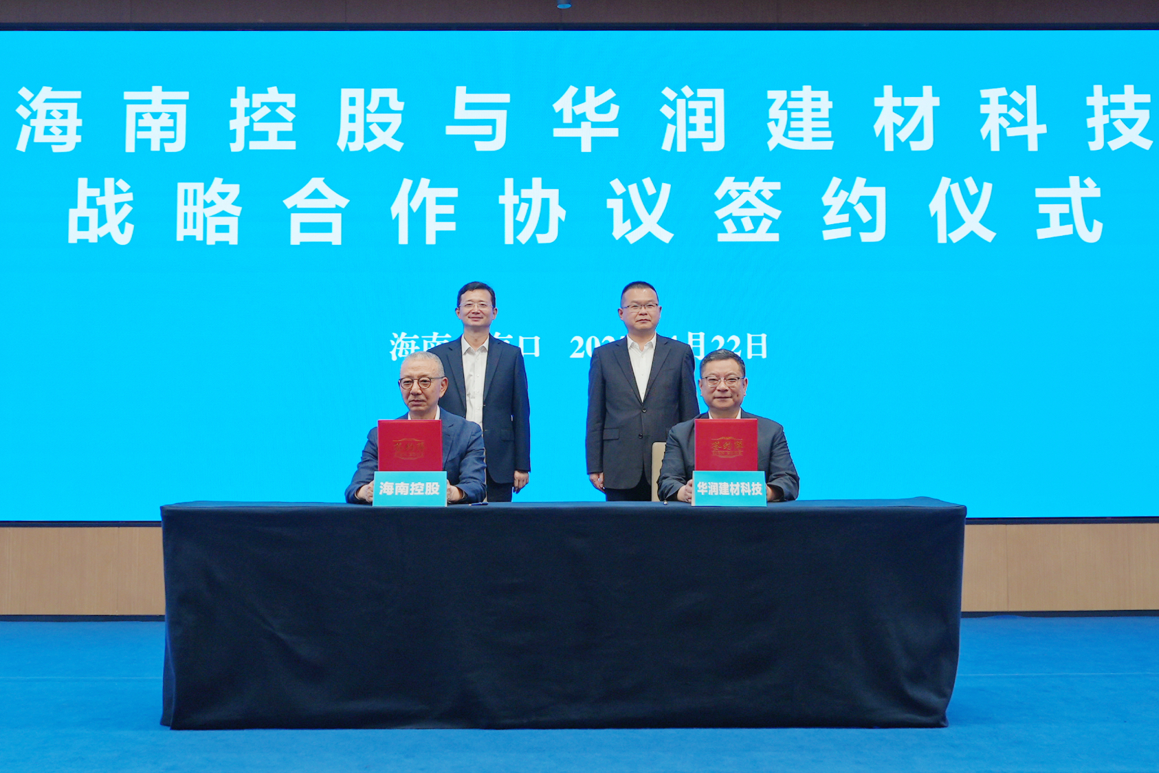 On April 22, China Resources Building Materials Technology and Hainan Development Holdings Co., Ltd. (hereinafter referred to as "Hainan Holdings") signed a strategic cooperation agreement in Haikou. Jing Shiqing, Chairman of the Board of China Resources Building Materials Technology, and Zhou Junping, Chairman of Hainan Holdings, witnessed the signing. Vice President of China Resources Building Materials Technology, Lu Hong, and Assistant General Manager of Hainan Holdings, Lu Xiaoming, signed the agreement on behalf of both parties. Zeng Tao, Deputy General Manager of Hainan Holdings, presided over the signing ceremony.